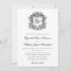 Este convite de casamento para monogramas elegante apresenta uma crista ornamentado com a caligrafia de rico interbloqueada para as iniciais da noiva e do noivo e os nomes, em preto e branco clássico. Encontre produtos correspondentes na coleção, ou envie-me mensagens através do Zazzle Chat para obter mais produtos e ajustes de design.