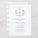Este elegante design de convite de casamento azul e branco apresenta uma crista de aquarela clássica com um toque litoral/náutico. É feita inteiramente a partir das minhas ilustrações originais de aquarela.