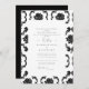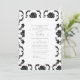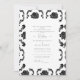 Convite para Casamentos tema damasco preto e branco. Ambos os pais listaram. Script Simples. Entre em contato com o designer para mudanças neste design (cor, pais, número de locais). Eucalipto sem som.