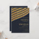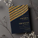 Este convite de casamento da tipografia geométrica azul e dourada de oxford moderno é a design perfeita para complementar um evento clássico e sofisticado. Apresenta uma tipografia de ouro simples e elegante sobre fundo azul escuro. Este design contemporâneo, único e clássico impressionará todos os seus convidados.