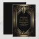 Convites Casamento de Deco de Arte Dourada e Preta Elegante