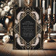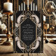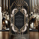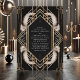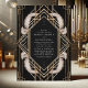Convide seus hóspedes com estilo e glamour usando este Convite para Casamento de Penas de Arte Negra e Dourada. Apresentando um quadro de ouro geométrico opulente contra fundo preto com penas brancas elegantes, esse design evoca a essência da era Gatsby 1920. É perfeito para uma celebração em grande escala, adicionando um toque de luxo vintage à sua papelaria de casamento e estabelecendo o tom para um evento inesquecível.