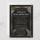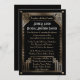 Uma nova variação marca em um dos nossos designs de Convite de Casamento mais populares, este modelo de convite apresenta um fundo preto com gráficos falsos em tons de ouro. Um quadro retangular duplo engloba o padrão de estilo de Excelente do movimento geométrico do ornamentado Art Deco. Por favor, saibam que este convite é inteiramente impresso, que não existe nem cobertura nem tinta metálica. Para obter o melhor efeito, você pode considerar a atualização para uma das opções de papel Luxe Shimmer.