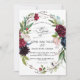 Um design adorável! Apresenta lindas flores cor-de-água, cor-de-rosa, arrojadas, vermelhas, azuis-marinho, folhas verdes como uma coroa elegante, fontes modernas, todas sobre fundo azul marinho. Na parte de trás, um quadro floral com noiva e iniciais nobres. Use a ferramenta Personalizar para adicionar suas informações. Itens correspondentes podem ser encontrados na minha Coleção de Flores Azuis da Borgonha.