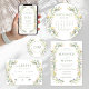 Mergulhe na sofisticação refinada com nosso elegante convite de casamento do jardim russo da boêmia em matizes verdes. Com uma coroa graciosa entrelaçada com rosas brancas, folhas de eucalipto, este convite é perfeito para celebrações de temas verdes. Inclui um monograma e um código QR para o seu website de casamento, acrescentando um toque moderno.