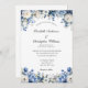 Um elegante design de convite para casamento floral, azul e branco, empoeirado. Todos os campos são editáveis para fazer o convite de acordo com as suas necessidades. Download digital ou impresso.