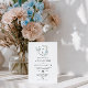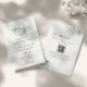 Delicar o código QR do monograma floral branco e azul empoeirado, tudo em um convite de casamento.