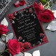Convites Casamento de Design Negro e Vermelho Floral Gótico