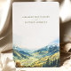 Ponha o tom para o casamento de destino da montanha com este convite de casamento Aspen, Colorado, maravilhosamente desenhado. Apresentando uma paisagem com uma cor d'água impressionante nas Montanhas Rochosas no outono, este convite captura a beleza natural dos vales de ouro de Aspen, árvores verdes e picos de neve. O design artístico combina uma estética serena de montanha com uma tipografia elegante, fazer perfeita para casais planejando um luxuoso casamento ao ar livre ou rústico. Esteja você comemorando em uma recepção acolhedora ou em um resort alpino em escala alta, este convite define o tom aventureiro perfeito, mas sofisticado, para seu dia especial.