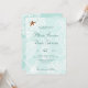 Destino da praia de verão convite para casamento verde de vidro marinho com conchas, estrelas-do-mar, cavalo-marinho e corais e um roteiro de caligrafia.