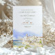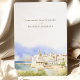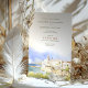 Convide os seus convidados para uma comemoração europeia romântica com este convite de casamento deslumbrante. O design apresenta uma ilustração macia e sonhadora da aquarela da cidade costeira encharcada de Sitges, Espanha, capturando seus icônicos edifícios brancos e o sereno Mar Mediterrâneo. A tipografia elegante e minimalista é colocada acima da trabalho de arte, criando um sentimento sofisticado e moderno. Este convite é perfeito para um casamento de destino, uma celebração de verão, ou para qualquer casal sonhando com um evento à beira-mar na Espanha. Todo texto é totalmente personalizável para compartilhar os detalhes do seu dia especial.