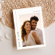 Anuncie seu dia especial com nossa Foto Elegante Destino Casamento Duplo Lado Salve A Data. Apresentando um design moderno com uma bela foto, este cartão é perfeito para casamentos de destino. O layout duplo garante que sua mensagem seja clara e elegante. Ideal para salvar os anúncios de data, este cartão combina sofisticação com personalização.