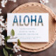Excitem seus convidados com este belo convite de casamento da tipografia da praia ALOHA, que foi projetado para ser não apenas bonito, mas também ecológico, pois você pode adicionar a informação ao seu site de casamento no verso. Ficarão tão felizes em ouvir a sua voz de que estou no Havaí.