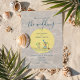 Convite para casamento de praia de destino moderno, elegante e de verão com oceano, palmeiras tropicais ilustração e simples roteiro de caligrafia.