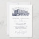 Imprima seus convidados com este convite elegante de casamento de Jessica Amber. Este cartão clássico apresenta uma ilustração detalhada da safra de um hotel grande. Você pode substituí-lo por uma imagem do destino do seu casamento (fundo transparente ou branco preferido). A inscrição azul escura legante mostra os nomes da noiva e do noivo e os detalhes do casamento, incluindo a localização, data e hora. Este convite é preferido para quando o casal estiver hospedando o evento. Procure na minha coleção o conjunto de convites correspondente. ⚠ Se quiser editar a caligrafia e usar caracteres especiais, copie e cole-os desta página: bit.ly/Emeline-Script ⚠ ・ ・ Para mais suites de casamento de destino, visite minha loja Zazzle.com/EventsByJessicaAmber ・ ・ ・ Para pedidos personalizados, envie-me uma mensagem no Zazzle