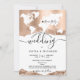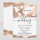 Planejando um casamento no destino romântico? Convide seus convidados com este simples e moderno Convite Rose Gold com um mapa mundial e seu destino personalizado marcado com o coração móvel.