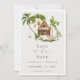 Este casamento, exceto o convite de data, é um design da selva tropical com as cores da natureza. Apresenta palmeiras, florestas tropicais lúcidas e bangalôs aninhados num belo cenário do paraíso tropical.