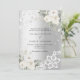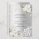Para um casamento elegante e romântico. Um fundo de aparência pura prateada decorado com florais brancos, rosas, rendas brancas e diamantes falsos. Personalize e adicione seus nomes e detalhes.