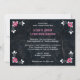 Um convite de casamento bonito e casual. A frente tem uma bela foto de uma noiva e pés de noiva, vestindo seu traje de casamento, em calçados giros. Os calçados dela são um rosa vibrante! O casal feliz está parado em um restaurante com pisos lotados. A parte de trás do convite contém todos os seus detalhes e está embelezada com um canto floral de rico floral florescente.