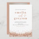 Este convite de casamento contém sequências de douradas rosa falsas e um esquema de glama divertido. Use esta modelo para editar as fontes, a cor da fonte e a cor do plano de fundo para atender às suas necessidades de eventos. Edite *a maioria* do texto para melhor corresponder ao seu estilo de evento. Adicione a sua própria fotografia à parte de trás para um toque pessoal