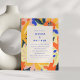 Convite para Casamento Botânico do Abstrato de Artéria Retroativa em Azul, Laranja, Rosa e Amarelo com Detalhes Online do RSVP