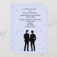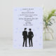 Um convite de casamento clássico elegante com dois noivos. As silhuetas dão uma sensação romântica a este belo convite de casamento gay. Este convite minimalista é perfeito para o seu tema romântico moderno. Este olhar vai correr bem em qualquer época de casamento, primavera, verão, outono ou inverno. Excelente para um casamento moderno, e perfeito para um casamento clássico também!