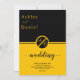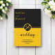Este elegante convite de casamento preto e dourado é perfeito para um casamento moderno. o design de luxo apresenta uma elegante caligrafia dourada num fundo negro.