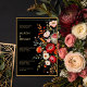 Este elegante design de convite para o casamento apresenta florais de outono maravilhosos num fundo negro com tipografia clássica. Esta design é a escolha perfeita para um casamento rústico mas elegante no final do verão ou no outono.