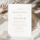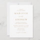 Convite de casamento minimalista e moderno com detalhes de seu casamento em letras douradas com sotaques de escrita de caligrafia. O fundo branco pode ser alterado para uma cor de sua escolha. Projetado para coordenar com a nossa coleção de casamento do Modern Elegance.