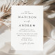Convite de casamento minimalista e moderno com detalhes de seu casamento em letras negras com acentos de escrita de caligrafia. O fundo branco pode ser alterado para uma cor de sua escolha. Projetado para coordenar com a nossa coleção de casamento do Modern Elegance.