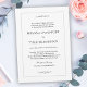 Um convite de casamento saboroso com simplicidade clássica, este design apresenta uma fina borda prateada rodeada de seu texto e embelezada com florescimento caligráfico. Você pode adicionar, remover ou ajustar o posicionamento do texto de acordo com as suas necessidades. O popular fundo branco soma-se à simplicidade limpa deste design. Quer você esteja tendo um casamento formal na igreja ou um simples casamento secular, esta design é sempre uma escolha apropriada.