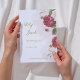 Faça seu convite de casamento inesquecível com este design de rosa. Apresentando rosas vermelhas profundas em um fundo de aquarela cor-de-rosa suave, esta placa irradia romance e sofisticação. A combinação de fontes modernas de sans-serif e scripts elegantes adiciona um toque de charme de eterno. Uma mensagem sincera convida seus convidados com simplicidade e graça. Perfeito para casamentos românticos, comemorações de jardim ou cerimônias íntimas. F012