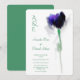 Convite de casamento único, elegante e chico de verde luxuoso com iniciais na moda monogramas, violeta quente e pintura de abstrato de tulipas pintadas com cor verde-d-água.