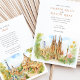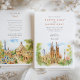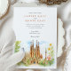 Convide seus entes queridos para comemorar seu dia especial com este maravilhoso pacote de convite para casamento em aquarela, com os marcos icônicos de Barcelona, Espanha. A frente mostra a majestosa catedral Sagrada Família, sua intrincada arquitetura e aranhas alentadas em um delicado estilo aquarela, complementada por um arranha-céu moderno e outros toques locais. As belas construções e as decorações em forma de flor são enquadradas por verde e flores macios. O reverso, projetado para "Os Detalhes Mais Finos", apresenta uma representação vibrante de Park Güell, mostrando sua arquitetura balbuciosa e famosos designs mosaicos, trazendo uma atmosfera viva e alegre. Esta suite é perfeita para um casamento de destino em Barcelona, uma celebração de temas espanhóis, ou para casais que querem celebrar o seu amor pela arte, história e o encanto único de Barcelona.