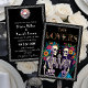 Celebre seu amor em estilo único com o convite de casamento do Dia dos Mortos inspirado no esqueleto. Apresentando dois esqueletos lindamente detalhados adorados com cornetas florais vibrantes, este design gótico, porém romântico, é perfeito para casais que abraçam o não-convencional. Com um fundo negro ousado, flores coloridas, e uma arte esquelética caprichosa, é ideal para casamentos de Halloween, cerimônias góticas, ou comemorações de Dia de los Muertos. Personalize com seus nomes, data e detalhes do casamento para um convite realmente inesquecível.