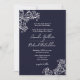 Convite para Casamento de Estilo Elegante Branco e marinho projetado com sotaques brancos suaves em um fundo de marinho escuro. O texto inicial inclui: Nomes de pais da noiva e do noivo, Nomes da noiva e do noivo, data de casamento, hora, local e recepção a serem seguidos. O texto inverso inclui: Detalhes de RSVP, em um fundo de marinho escuro com sotaques brancos suaves. Para personalizar, basta inserir seus detalhes em nosso modelo fácil, substituindo o texto de exemplo. Este convite está disponível em Impressão ou Download. Para o seu casamento com estilo náutico, casamento com estilo militar, casamentos de verão Não se esqueça de ver toda a coleção de casamentos com estilo elegante Marinho e branco para cartas e acessórios correspondentes.