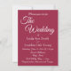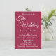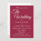 Estilo simples, convite de casamento que apresenta uma tendência, fundo de cor vermelha de vinho juntamente com nomes de noiva e noivo futuros e data do evento, hora, local e registro impressos em um script branco e estilizado. Personalize seu convite de casamento substituindo informações por seu. Selecione o estilo e a quantidade do seu papel de convite. Projetado para coordenar com nossa coleção de Casamento de Estilo Simples e Vermelho Vinho.