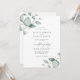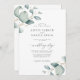Bicho botânico russo belo esmeralda esmeralda verde poeirento ouro aquarela galhos eucalipto convite de casamento com elegante roteiro clássico.