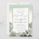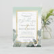 Modelo de convite de casamento Eucalyptus. Eucalipto, sábio, verde esmeralda desbotado, folhagem azul-esfarelada de verde com uma folha de ouro elegante, moderna e simples e elegante roteiro caligráfico. (As folhas de eucalipto no design são fotos manipuladas). Esta design de casamento faz parte da minha coleção de Casamentos Eucalyptus que inclui: convite para casamento, Salve os designs de Data, Obrigado, RSVP, designs, favores personalizados e outros artigos de papelaria e janto de casamento, itens de festa. (Você pode encontrar todo o conjunto entre as minhas Coleções.)