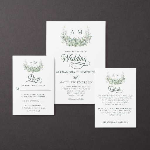 Monogram Eucalyptus Greenery Wreath Wedding SuiteCriado por Connie R.