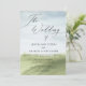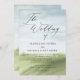 Este elegante convite de casamento apresenta um fundo paisagístico de aquarelas. O texto é uma tipografia caligráfica elegante e fonte serif clássica.
