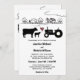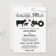 Este convite de casamento tem uma vaca, bezerro e trator. Eles são colocados contra uma charmosa fazenda de países.