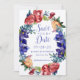 A felicidade é uma coroa de lindas flores vermelhas, roxas e damascos coladas contra verde escuro e verde azul. Personalizável Guardar a nossa Data.