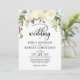 Design floral rústico simples e elegante de cor aquosa (cor aquosa) verde verde, rosa, bege, champanhe, flores brancas de baunilha sobre fundo branco e letras pretas. Convites de casamento deliciosos para o tema do casamento de primavera ou verão. Cartões de casamento. A parte de trás do cartão tem nomes de noiva e noivo. Ver todo o papel de carta de casamento.