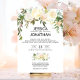 Design floral rústico simples e elegante de cor aquosa (cor aquosa) verde verde, rosa, bege, champanhe, flores brancas de baunilha sobre fundo branco e letras pretas. Convites de casamento deliciosos para o tema do casamento de primavera ou verão. Cartões de casamento. A parte de trás do cartão tem nomes de noiva e noivo. Ver todo o papel de carta de casamento.