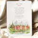 Convide seus convidados para comemorar seu dia especial com este convite de casamento encantador de aquarelas, capturando o charme idílico de uma vila costeira norueguesa. A trabalho de arte retrata lindamente casas coloridas de madeira em tons de vermelho, amarelo e laranja anjados ao longo das águas serenas de um fiorde, com majestosa, ascensão de montanhas nebulosas ao fundo. Uma tradicional igreja de barracas de madeira é destacada, acrescentando ao caráter único da cena. Tocações de folhagem verde e pistas de amarelo do outono nas árvores completam essa paisagem pitoresca. Criado em estilo aquoso romântico e suave, este convite é perfeito para um casamento de destino na Noruega ou para casais que adoram beleza escandinava e paisagens tranquilas. A frente apresenta elegantemente seus detalhes de casamento, enquanto o lado inverso oferece "Os detalhes mais finos" para informações adicionais e seu site de casamento. A paleta de cores apresenta azuis serenos, verdes terrenos, vermelhos quentes e amarelos e cinzentos macios.
