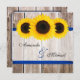Um convite de casamento elegante de girassol. Apresentando fita azul de celeiro rústica e girassóis amarelos. Perfeito para um casamento de campo, casamento de girassol, casamento de celeiro e muito mais! Se você está planejando um casamento de casamento outono ou outono, esses convites certamente impressionarão.Os Designs são ilustrações/gráficos impressos - NÃO É REAL.