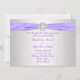 Elegante fita lilás roxa com centro de joia de diamante sobre uma renda prateada e fundo roxo 7x5 convite de casamento. Personalize com sua escolha de estilo de fonte e cor da fonte. Exclua o texto da frente para um visual mais formal.