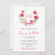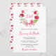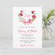 Este convite de casamento rústico e elegante mostra coroa de água com cor rosa e rosas vermelhas, uma fita e verde. O texto combina o script manuscrito e as fontes serif para uma aparência na moda e moderna. Isto é perfeito para um casamento de primavera ou verão.