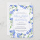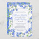 Belo convite de casamento floral rápido. Sombreado em azul bonito, verde e branco. Edite este convite com suas próprias palavras e detalhes do evento de casamento. Design único e pintura botânica de cor aquática original de Sarah Trett www.sarahtrett.com para www.mylittleedenweddings.com no zazzle.